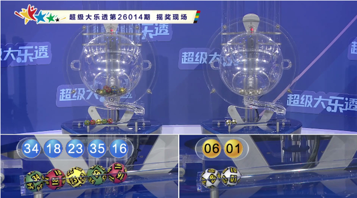 上期开奖:大乐透第2026014期开奖号码为:16、18、23、34、35+01、06。
