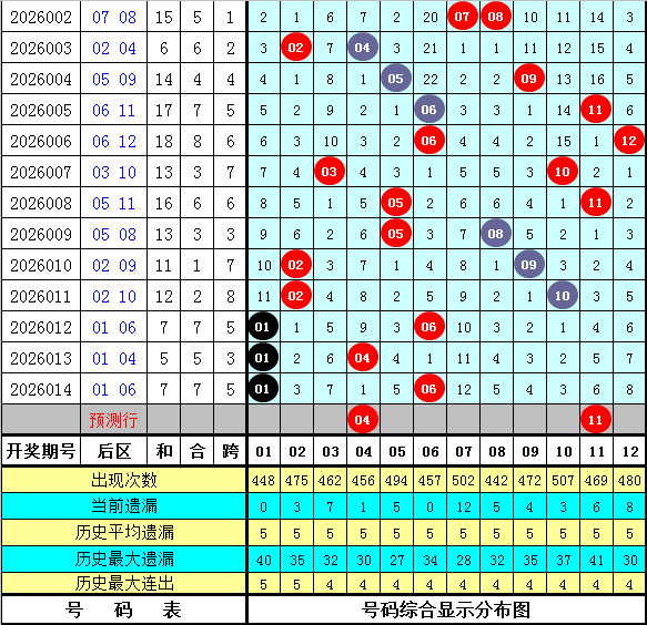 其中,后区奇偶比为16:24,大小比为17:23,012路比为6:16:18,本期后区金胆参考04。