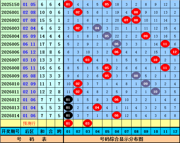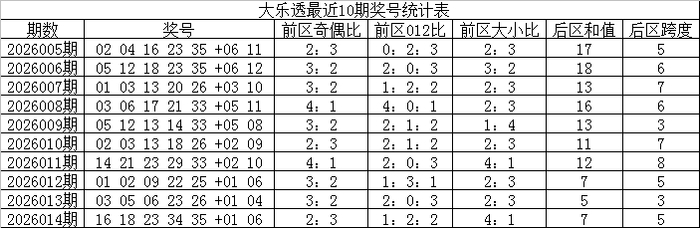 012路分析:上期前区奖号012路比为1:2:2,最近两周2路前区奖号走势较热,1路前区奖号表现较冷。